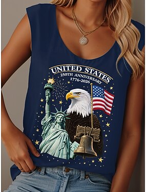 独立記念日 アメリカ 記念日 愛国的 女性用 T シャツ グラフィック 旗 旗 カジュアル ノースリーブ クルーネック レギュラー トップス デイリー プリント ブルー ブラック ホワイト レッド 夏 春 酔っ払った