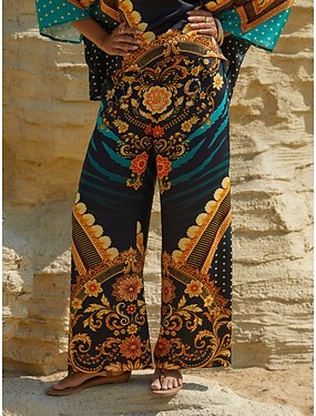 グラデーションタイガー柄シルキーサテン伸縮性パンツ