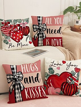 バレンタインデーの枕カバーセット、ラブレタープリント、ハートデザイン、ソファ用の装飾クッション、リビングルームと寝室の装飾に最適な居心地の良いアクセント枕