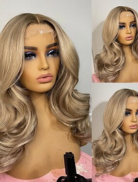 オンブレ アッシュブロンド 人毛 5x5 クロージャー 13x4 レースフロントウィッグ ブラジル産 100% バージンヘア ウェーブ人毛ウィッグ ナチュラルヘアライン プレプラックド グルーレス 女性用