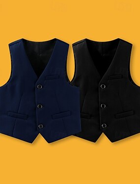 子供 男の子 ベストコート アウターウェア 純色 ノースリーブ Vネック ボタン コート アウトドア ファッション クール 日常 ブラック ネイビーブルー ライトグレー 春 秋 4〜12年
