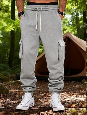 男性用 カーゴパンツ スウェットパンツ ズボン ストレートレッグスウェットパンツ ドローストリング ポケット 弾性ウエスト 平織り 履き心地よい ソフト カジュアル 日常 アウトドア 旅行度假风 ファッション ブルー ブラック