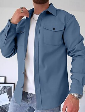 男性用 シャツ スタイル カジュアルシャツ コーデュロイシャツ ボタンアップシャツ ブラック ホワイト バーガンディー ネイビーブルー グリーン 長袖 平織り シャツカラー カジュアル 日常 フロントポケット 衣類 エレガント ファッション 近代の カジュアル
