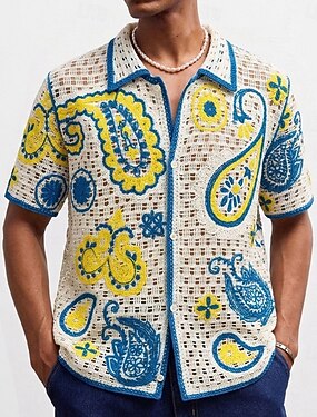 男性用 ポロ ポロシャツ カジュアル ストリート ラペル 半袖 ベーシック 近代の ペーズリー ライトウェイト ボタン 夏 春 レギュラー アプリコット ポロ