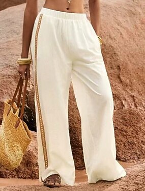 女性用 ベルボトム チノパン パラッツォパンツ エレガント 旅行度假风 ヴィンテージ ふくらはぎ丈 ミディアムウエスト 純色 タッセル パッチワーク ポケット 快適 高通気性 伸縮性なし 日常 家 アウトドア アプリコット ブラック ホワイト 夏 春 ルーズフィット