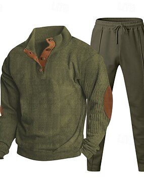 男性用 トラックスーツ 衣装セット パーカーセット スタンド アウトドア 日常 スポーツ カラーブロック ブラック ネイビーブルー ブルー ポリエステル コーデュロイ アクティブウェア ファッション ストリートファッション 春