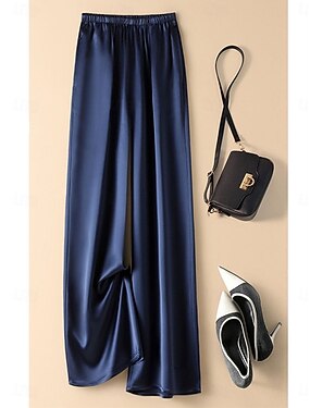 女性用 フェイクコットンリネン ワイドレッグ チノパン サマーパンツ 旅行度假风 ファッション ストリートファッション 全長 ハイウエスト 平織り 弾性ウエストバンド 快適 ソフト 伸縮性あり アウトドア ストリート 紺 ワイン カーキ色 夏 春 秋 ルーズフィット