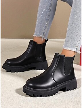 レディース ホワイト チャンキー チェルシーブーツ(ラグソール付き) - ストリートウェアやモダンファッションにぴったりの伸縮性のあるサイドプラットフォーム アンクルブーツ