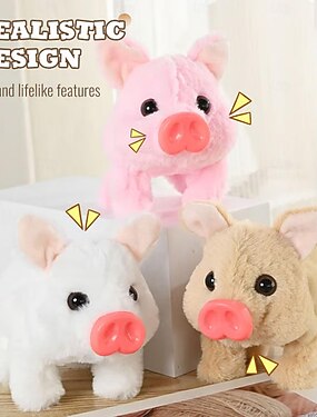 電気豚のぬいぐるみのリアルなおもちゃ、歩く子豚のペットのインタラクティブ、這う子豚の電子ぬいぐるみの豚、歩いたり、尻尾を振ったり、鼻を動かしたり、ブーブーという音を出したり、電池不要
