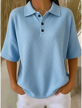 女性用 ワッフルシャツ 純色 エレガント 活発的 旅行度假风 ハーフスリーブ Vネック ロングトップス 日常 アウトドア ストリートウェア ホワイト ルビーレッド スカイブルー オレンジ ブラック 夏 春 秋
