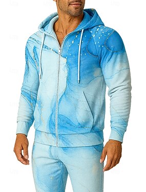 男性用 パーカー トラックスーツ 2ピーストラックスーツ ドローストリング ジッパーを閉める 幾何学模様 スーツウェア 秋 冬 ブルー ボウケーション 屋外 トラベル ライトウェイト ファッション 長袖 スポーツ アクティブウェア 伸縮性あり レギュラー