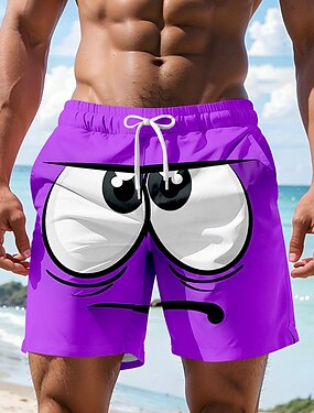男性用 3D印刷 3Dカトゥーン 大きな目 スイムトランク スイムショーツ ボードショーツ ミディアムウエスト ハワイアン おかしい ビーチでの休暇 サイドポケット メッシュライニング 伸縮性のあるドローストリングウエスト デザイナー 衣類