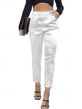 女性用 サテンパンツ ワイドレッグ テーパードパンツ チノパン エレガント ストリートファッション カジュアル 全長 ミディアムウエスト 平織り ポケット 弾性ウエスト 快適 伸縮性なし マイクロエラスティック アウトドア バケーション フォーマル アプリコット ブラック ホワイト ダークレッド 夏 春 秋 冬 ルーズフィット