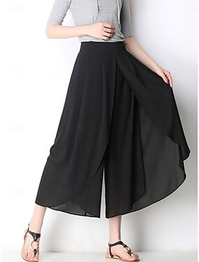 女性用 ワイドレッグ チノパン 旅行度假风 ファッション ストリートファッション 足首丈 ハイウエスト 平織り 多層式 弾性ウエストバンド 快適 ソフト 高通気性 伸縮性あり アウトドア ストリート 紺 ブラック ワイン グリーン 夏 春 秋 ルーズフィット