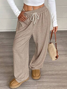 女性用 生意気 ワイドレッグ チノパン パンツ 旅行度假风 ヴィンテージ ストリートファッション 全長 ミディアムウエスト 平織り ポケット 弾性巾着デザイン 快適 マイクロエラスティック 高弾性 日常 アウトドア ストリートウェア グレー ブラック ホワイト カーキ色 秋 冬 ルーズフィット