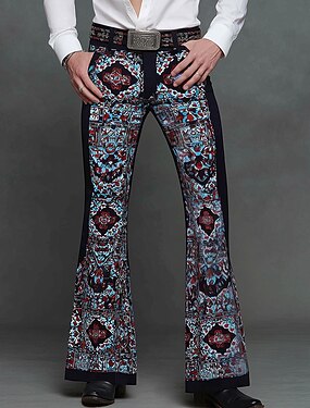 男性用 幾何学模様 エスニック ディスコパンツ 60年代 70年代 ベルボトム ミディアムウエスト 西洋料理 ヴィンテージレトロ アウトドア バケーション カジュアル サイドポケット フレアレッグパンツ 春 秋 3Dプリント ブラック