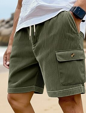 男性用 カーゴショーツ サマーショーツ ビーチショーツ カジュアルショーツ コーデュロイショーツ ドローストリング 弾性ウエスト 純色 履き心地よい 膝丈 日常 アウトドア 祝日 旅行度假风 ファッション ブラック ホワイト マイクロエラスティック