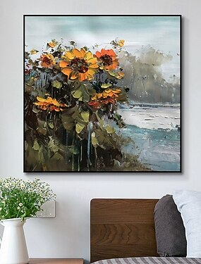 手作りの油絵キャンバス壁アート装飾モダンな抽象的な花ひまわりホームデコレーション用ストレッチフレーム吊り下げ絵画/ロールキャンバス(フレームなし)