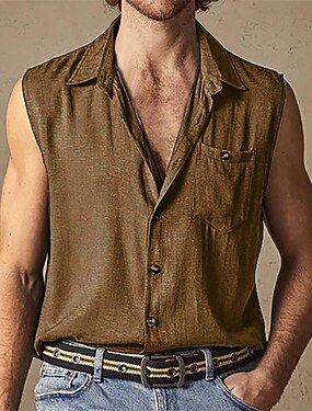 男性用 シャツ サマーシャツ カジュアルシャツ ビーチシャツ ボタンアップシャツ ブラック ホワイト ブラウン グリーン ライトブルー ノースリーブ 平織り ラペル バケーション ハワイアン ポケット 衣類 ポリエステル ファッション カジュアル 快適