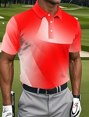 男性用 幾何学的な ゴルフ スポーツポロシャツ 半袖 ポロシャツ ラペル カジュアル アスレイジャー 3Dプリント ボタン 春夏 ルビーレッド ブルー パープル