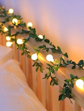 LED フラワーライト グリーン アイビー リーフ フェアリー ストリング ライト 2m 20LED 電池式 人工ガーランド 植物 つる フェアリー ライト 寝室 結婚式 パーティー 休日 パティオ用