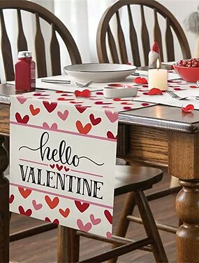バレンタインデーのピンクのハートのテーブルフラッグ、プレースマット、パーティーデコレーション、お祝いの家庭用ダイニングテーブルクロス、テーブルデコレーション
