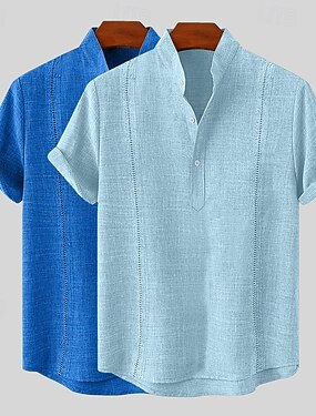 男性用 シャツ リネンシャツ ポップオーバー シャツ サマーシャツ ビーチウェア 純色 バケーション ストリート ホワイト ネイビーブルー ブルー 半袖 Band Collar 夏 春 衣類