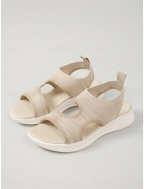 レディースベージュニットサンダル – 旅行、カジュアル、普段使いに最適な軽量で通気性の良いウォーキングサンダル