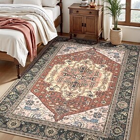 エリアラグ ヴィンテージペルシャスタイル リビングルームと寝室用 大きく耐久性のある汚れに強いフロアカーペット ソフト ノンスリップ ベッドサイドマット ホームデコ エスニックパターン クラシックデザイン