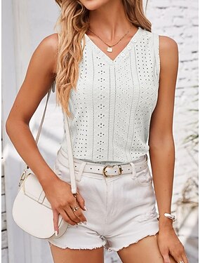 女性用 アイレットトップ ポインテルTシャツ テクスチャード加工 グラフィック スタイリッシュ クラシック ノースリーブ Vネック レギュラートップス カジュアル 日常 ビーチ ブラック ホワイト イエロー ピンク ダスティローズ 夏 春