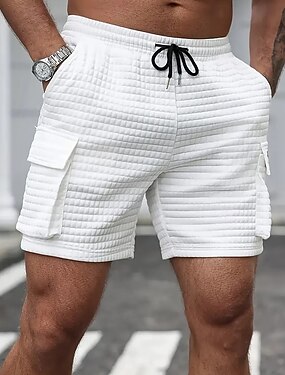 男性用 ワッフルショーツ ショーツ カジュアルショーツ ドローストリング ポケット 平織り 履き心地よい 高通気性 ショート カジュアル アウトドア バケーション 旅行度假风 ストリートファッション ブラック ホワイト マイクロエラスティック