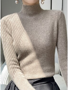 女性用 あったかインナー パジャマセット カジュアル コンフォートシューズ ピュアカラー 家 日常 長袖 モックネック ブラック ピンク ブラウン カーキ色 ベージュ 春 秋 冬 レギュラー