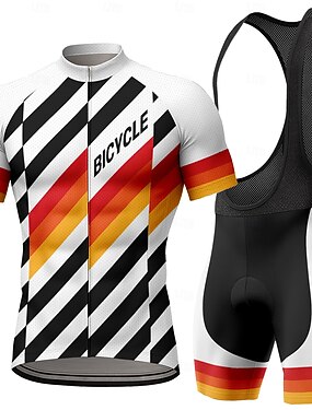 男性用 サイクリングジャージー ビブショーツ付きサイクリングジャージー サイクルジャージセット 半袖 マウンテンサイクリング ロードバイク 夏 レッド 幾何学模様 縞柄 文字&番号 バイク サンスクリーン UV耐性 3Dパッド 速乾性 反射性ストリップ スパンデックス ライクラ スポーツ 衣類