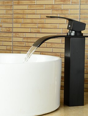 コンテンポラリー センターセット 滝状吐水タイプ with セラミックバルブ 一つ シングルハンドルつの穴 for オイルブロンズ , バスルームのシンクの蛇口