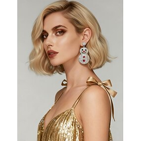 女性用クリスタルスノーマンダングルイヤリング - ホリデーパーティーや冬のお祝いにぴったりのクリスマスジュエリーアクセサリー
