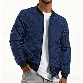 メンズボンバーキルティングジャケットダイヤモンドパッド入りジャケット冬アウトドア分厚いバーシティフライト防風暖かいトレンチコートトップキルティングシームコットンアウターオーバーコートフルジッパーキャンプハイキングハンティングフィッシング