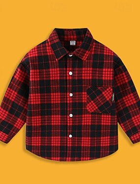 子供 男の子 シャツ チェック 長袖 ポケット カジュアル 中性 ルビーレッド 春 服 4年以上