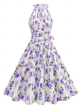 1950年代風 レトリ/ヴィンテージ ヴィンテージドレス 二次会ドレス / カクテルドレス スイングドレス フレアワンピース フラワー 仮装 女性用 マスカレード パーティー/フォーマル バチェロレッテパーティー 成人 ドレス ホームカミングドレス
