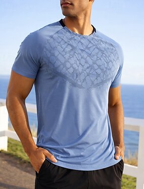 男性用 カモフラージュ ランニングTシャツ コンプレッション・シャツ アスレチックシャツ スポーツトップ 夏 半袖 速乾性 吸汗性 高通気性 ジムトレーニング ウォーキング ジョギング ブルー ホワイト ネイビーブルー スポーツウェア アクティブウェア