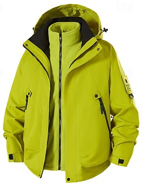 男性用 アウトドアジャケット レインコート ハイキング ジャケット バケーション 日常 保温 ポケット 3 in 1 秋 冬 平織り ファッション クラシック フード付き レギュラー ブラック イエロー グリーン アーミーグリーン ベージュ ジャケット