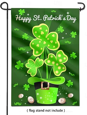 聖パトリックの日のガーデンフラッグ、シャムロックとレプラコーンのデザイン、緑 &金色のアイルランドの装飾、聖パトリックの日のお祝いのための屋外の庭の旗。