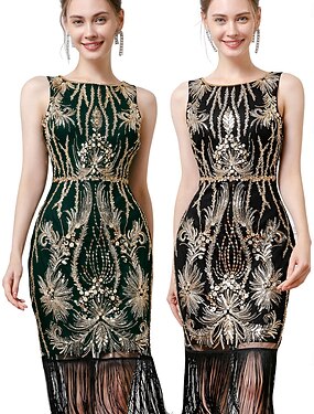 20代の轟音 1920年代風 膝丈 フラップワンピース ノー・スリーブ グレートギャツビー 結婚式のゲスト スパンコール スパンコール スクープネック 仮装 女性用 カーニバル カーニバル パーティー 結婚式 成人 ドレス ホームカミングドレス 夏 春