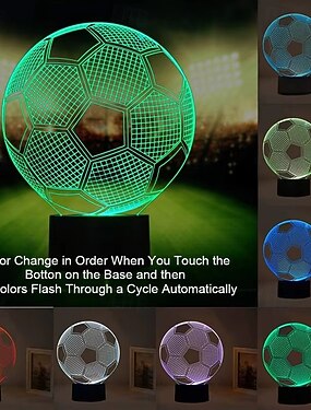 男の子向けのサッカー3Dイリュージョンナイトライト、タッチコントロールで色が変わるサッカーデスクランプ、子供部屋のスポーツ装飾、サッカーファンの男性やティーンエイジャーへのクールなギフト、誕生日や休日のテーブルやベッドサイドランプ