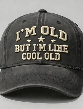 ヴィンテージ風のダメージ加工刺繍入りベースボールキャップ「私は年寄りだけど、クールな年寄りが好きなの」、面白いレトロなお父さんの帽子、男女兼用の調節可能なコットンウォッシュドヴィンテージハット、カジュアルなアウトドアトラッカーキャップギフト