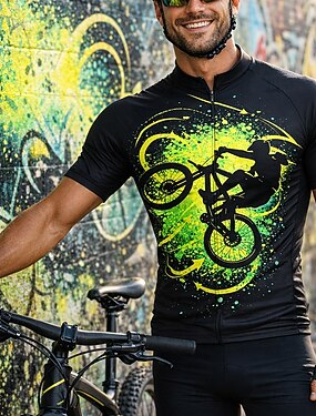 男性 サイクリングジャージー 抽象的 バイク 半袖 バイク ジャージー トップス 3つのリアポケット付き UV耐性 速乾性 ポケット付き フロントファスナー スポーツ グリーン 衣類