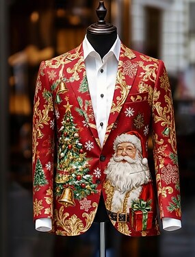 クリスマス 男性用 サンタクロース クリスマスツリー ブレザージャケット コート 快適 アーティスティック カジュアル パーティーイブニングウェア 日常 祭り 3Dプリント ボタン 秋冬 ノッチドラペル 長袖 ブルー ホワイト ルビーレッド
