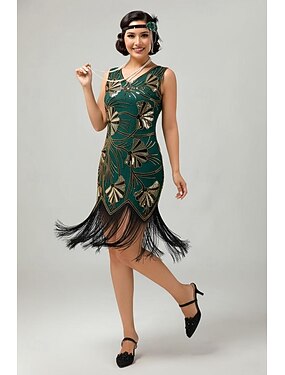 20代の轟音 1920年代風 膝丈 結婚式 独身パーティー フラップワンピース 半袖 グレートギャツビー スパンコール フリンジ Vネック 仮装 女性用 クリスマス カーニバル マスカレード レトロテーマパーティー チャールストンダンス 成人 ドレス
