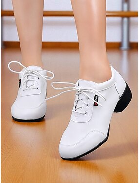 女性用ホワイトレースアップダンスシューズ - ラテン、ジャズ、パーティーパフォーマンスに最適なプロ仕様の社交ダンス練習用スニーカー