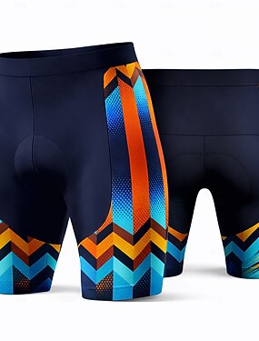 男性用 幾何学模様 サイクリング ロード ショーツ バイクショーツ パッド入りサイクリングショーツ バイク ショートパンツ ボトムズ スリムフィット スポーツ 3Dパッド 速乾性 モイスチャーコントロール 高通気性 ダークブルー+ブラック ブラック / イエロー 衣類 サイクルウェア