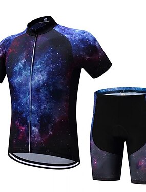 男性用 ショーツ付きサイクリングジャージー 半袖 マウンテンサイクリング ロードバイク 夏 パープル グラフィック バイク 3Dパッド 速乾性 後ポケット 吸汗性 高通気性 スパンデックス スポーツ 衣類